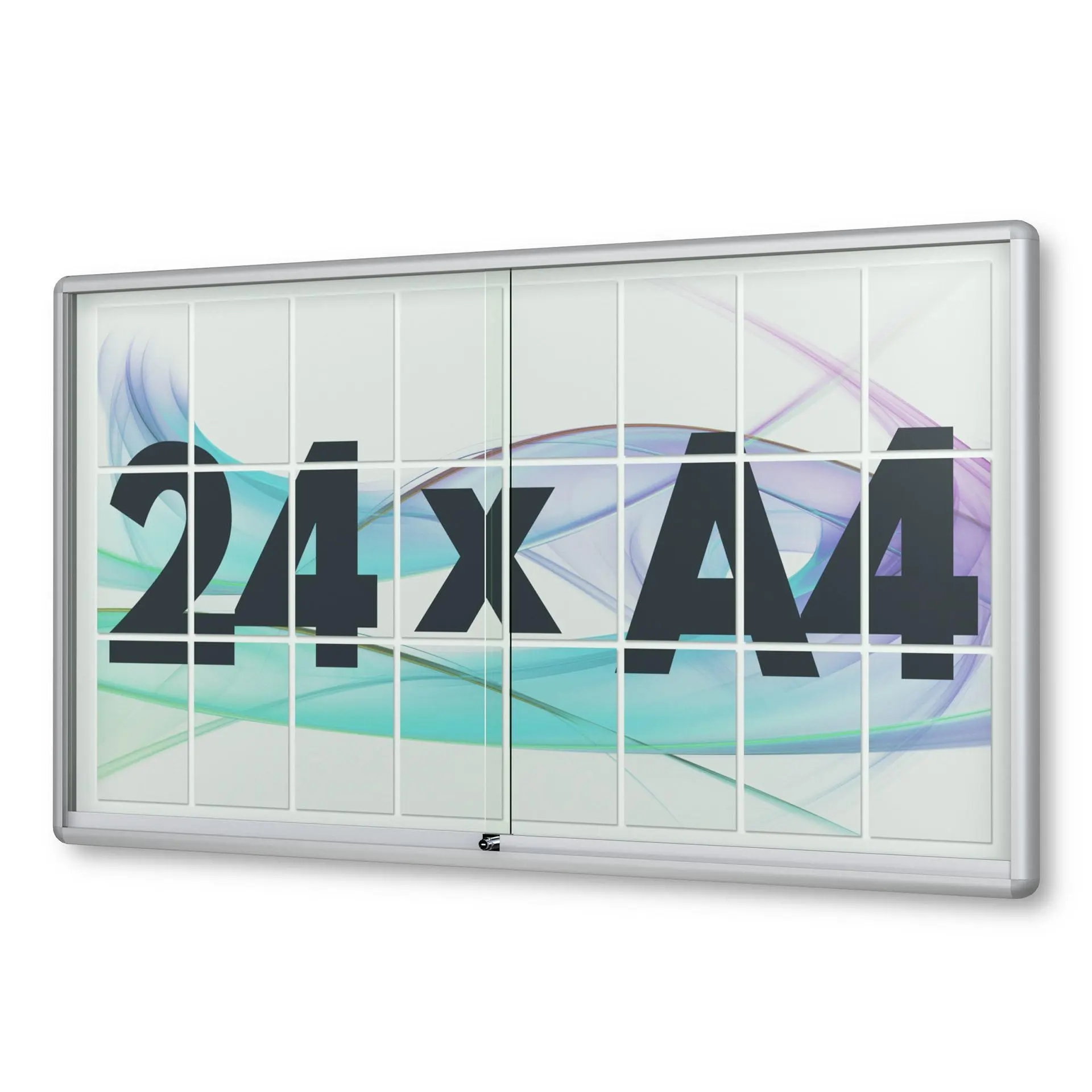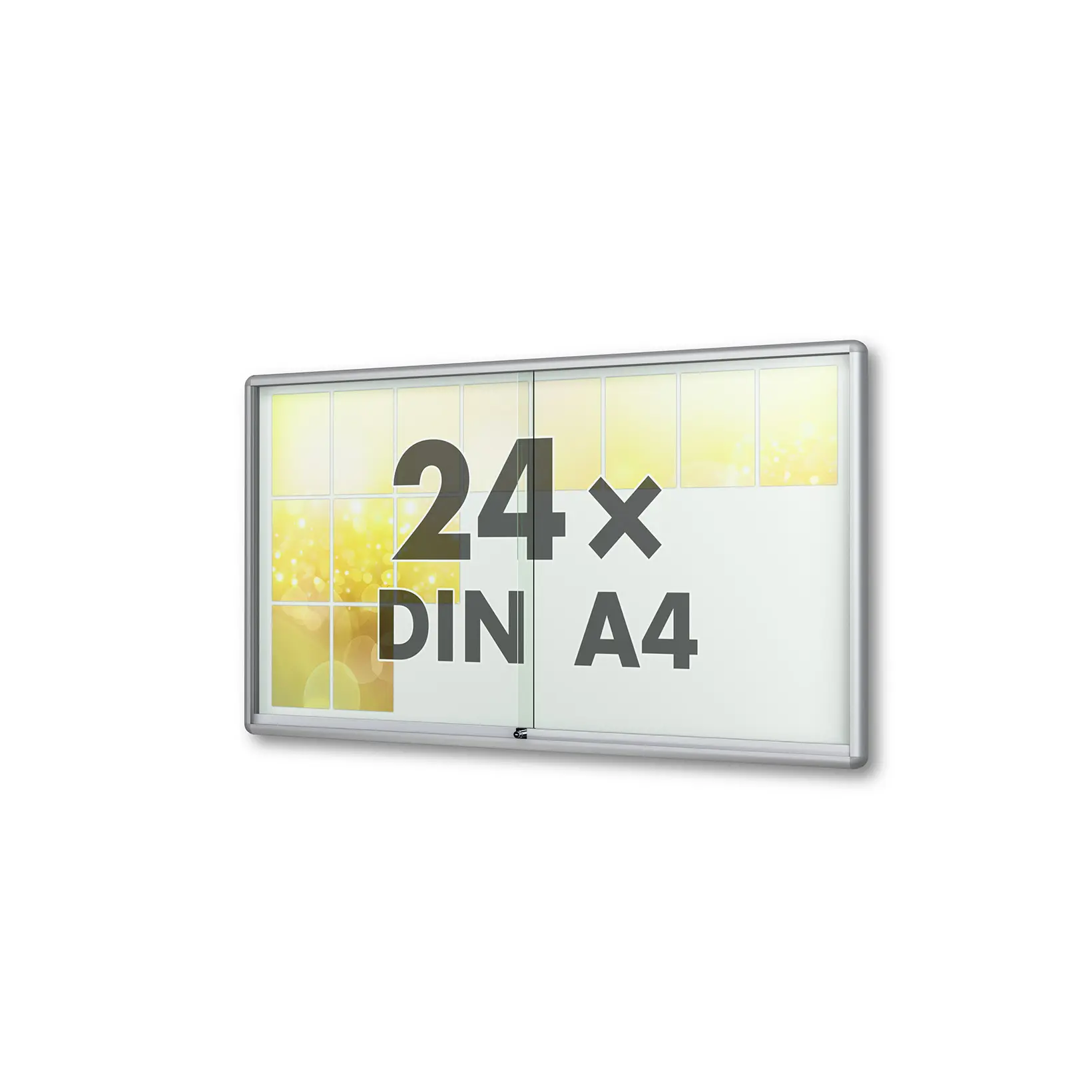 Vitrinen.de ➤ "24 x DIN A4 Schaukasten Moveo - "die Schulvitrine" - 50 mm Bautiefe - mit Brandschutzklasse A1 - Rollengelagerte Schiebetüren✓ abschließbar✓ ESG-Sicherheitsglas✓"