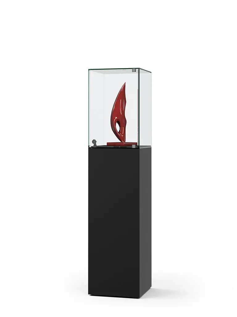 Haubenvitrine - Sockelvitrine - Stülpvitrine Haubenvitrine in transparenter Ganzglasbauweise mit ESG-Sicherheitsglasideale Lösung für Ausstellungen, Museen oder Ihr Büro.Glashöhe von 500 mmGlasaufbau unten offen zum Aufsetzen auf den Sockel – StülpvitrineOberfläche wahlweise in weiß, schwarz oder hellgrau (andere KS Dekore auf Anfrage) oder Lackierung in RAL-Farbton nach WahlAuf Wunsch in Sonderanfertigung nach Maß > Haubenvitrinen Größen B/H/THaubenvitrine - 400 × 1600 × 400 mm B/H/THaubenvitrine mit Beleuchtung - 400 x 1600 x 400mm B/H/THaubenvitrine - 500 × 1600 × 500 mm B/H/THaubenvitrine mit Beleuchtung - 500 x 1600 x 500mm B/H/T Öffnung - Glasaufbau unten offen, zum AufsetzenVerglasung - Einscheiben-Sicherheitsglas / ESGOberfläche - Korpus aus Holz melamin weiß, schwarz, hellgrau oder nach RALBeleuchtung - ohne Beleuchtung - optional: Beleuchtung mit einem LED-Strahler, inkl. Trafo an senkr. StrahlerschieneSchließung - Sicherheitsschlösser gegenüberliegend mit 2 Schlüsseln