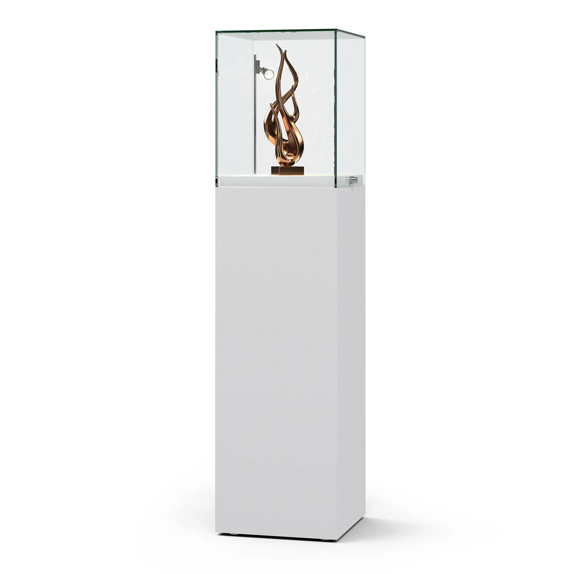 Haubenvitrine - Sockelvitrine - Stülpvitrine Haubenvitrine in transparenter Ganzglasbauweise mit ESG-Sicherheitsglasideale Lösung für Ausstellungen, Museen oder Ihr Büro.Glashöhe von 500 mmGlasaufbau unten offen zum Aufsetzen auf den Sockel – StülpvitrineOberfläche wahlweise in weiß, schwarz oder hellgrau (andere KS Dekore auf Anfrage) oder Lackierung in RAL-Farbton nach WahlAuf Wunsch in Sonderanfertigung nach Maß > Haubenvitrinen Größen B/H/THaubenvitrine - 400 × 1600 × 400 mm B/H/THaubenvitrine mit Beleuchtung - 400 x 1600 x 400mm B/H/THaubenvitrine - 500 × 1600 × 500 mm B/H/THaubenvitrine mit Beleuchtung - 500 x 1600 x 500mm B/H/T Öffnung - Glasaufbau unten offen, zum AufsetzenVerglasung - Einscheiben-Sicherheitsglas / ESGOberfläche - Korpus aus Holz melamin weiß, schwarz, hellgrau oder nach RALBeleuchtung - ohne Beleuchtung - optional: Beleuchtung mit einem LED-Strahler, inkl. Trafo an senkr. StrahlerschieneSchließung - Sicherheitsschlösser gegenüberliegend mit 2 Schlüsseln