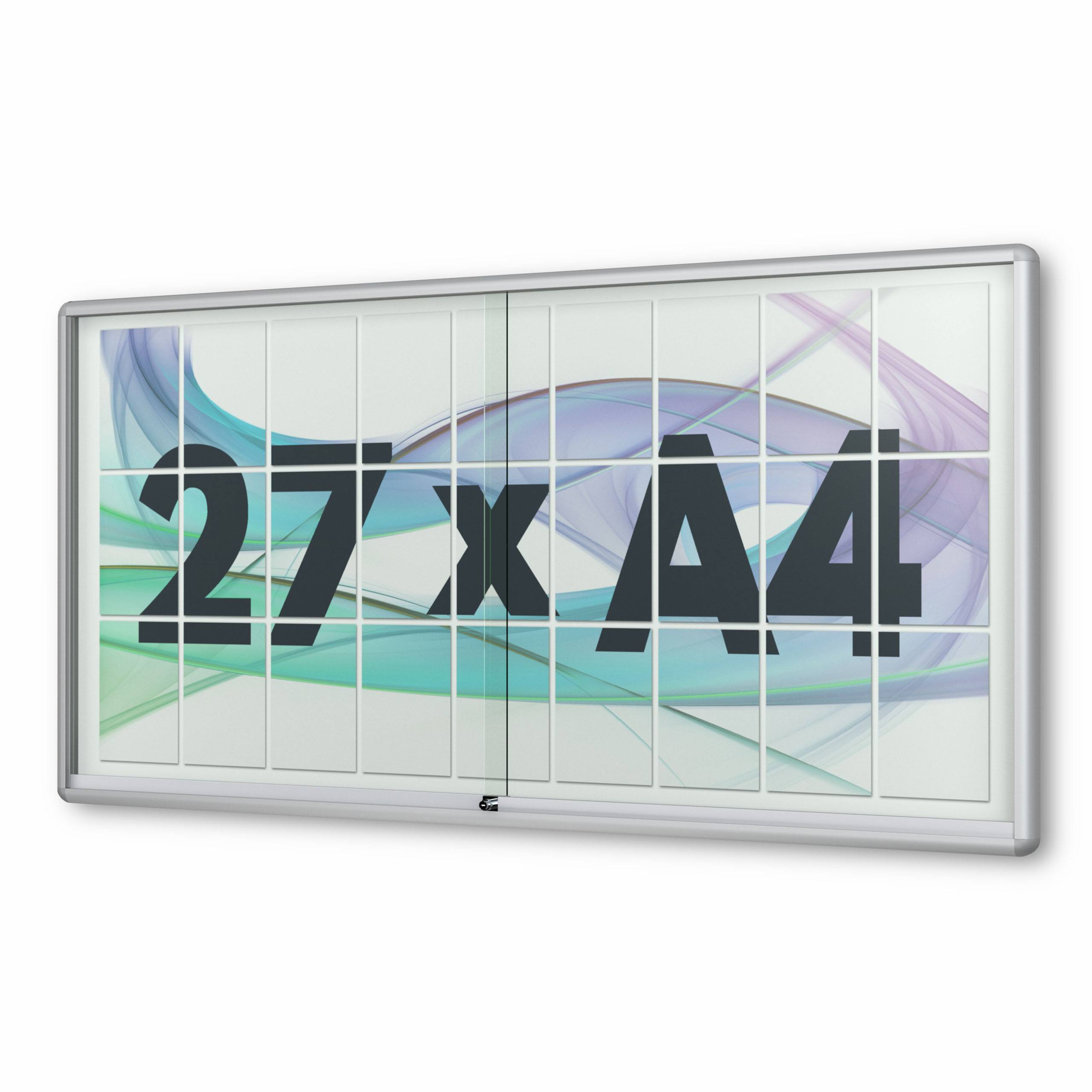 27 x DIN A4 Schaukasten Moveo - "die Schulvitrine" - mit Brandschutzklasse A1 - Rollengelagerte Schiebetüren✓ abschließbar✓ ESG-Sicherheitsglas✓
