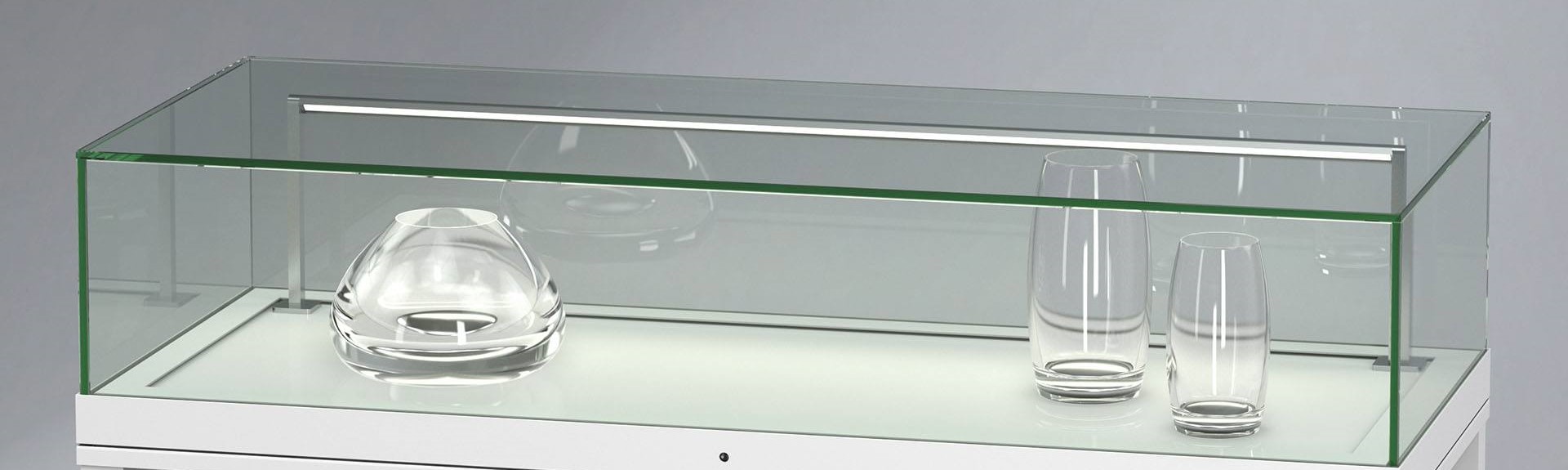 Glasvitrinen: Ganzglasvitrine, Glasvitrine, Haubenvitrine, Museumsvitrine, Schrankvitrine, Standvitrine, Tischvitrine
